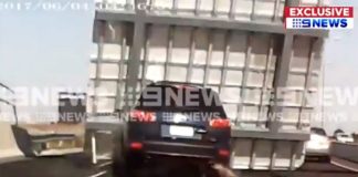 Дорожній знак розчавив і знищив великий кросовер (Відео)