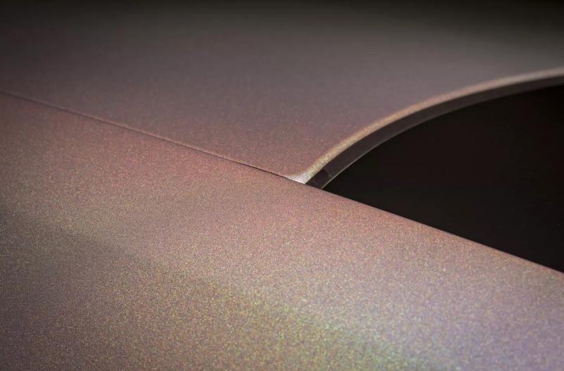 Нова Bespoke-версія Rolls-Royce Spectre присвячена місячному гало – оптичному явищу, що виникає через дисперсію світла в крижаних кристалах перистих хмар. Виглядає гало як райдужне кільце, і щоб відтворити цю колірну схему на кузові автомобіля, знадобився рік експериментів. Формулу фарби, витримку між шарами та базове покриття довго підганяли під загальну концепцію. Підсумком стала перламутрова семишарова емаль, в яку для блиску додали «лусочки» з фториду магнію та алюмінію.