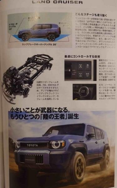 Toyota готується представити свій абсолютно новий позашляховик, який вклиниться в сімейство Land Cruiser. Напередодні в інтернет витекли фотографії рекламної брошури цієї моделі, що розкривають зовнішній вигляд довгоочікуваної японської новинки, а також деякі технічні подробиці про машину і її назву.