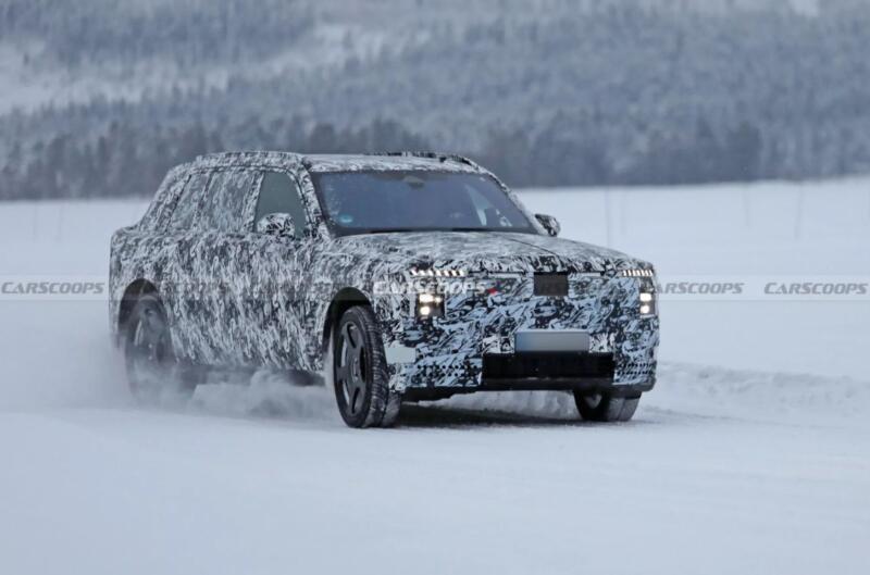 Rolls-Royce Cullinan з’явився у 2018 році і став популярним у модельному ряді бренду. Тепер компанія готує новий флагманський кросовер, помічений під час випробувань у холодній Скандинавії. Хоча машина ще замаскована, її легко впізнати: нова передня панель із розділеними фарами, ширша решітка радіатора та великий нижній повітрозабірник, схожий на той, що у Spectre.