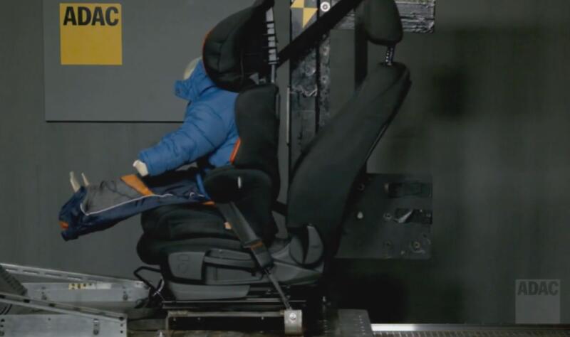 Німецький автомобільний клуб ADAC провів краш-тести, змоделювавши саме таку ситуацію. Навіть при швидкості лише 16 км/год ремінь безпеки не зміг належним чином захистити людину в товстій зимовій куртці. За даними ADAC, це може призвести до серйозних травм, включаючи внутрішні кровотечі.